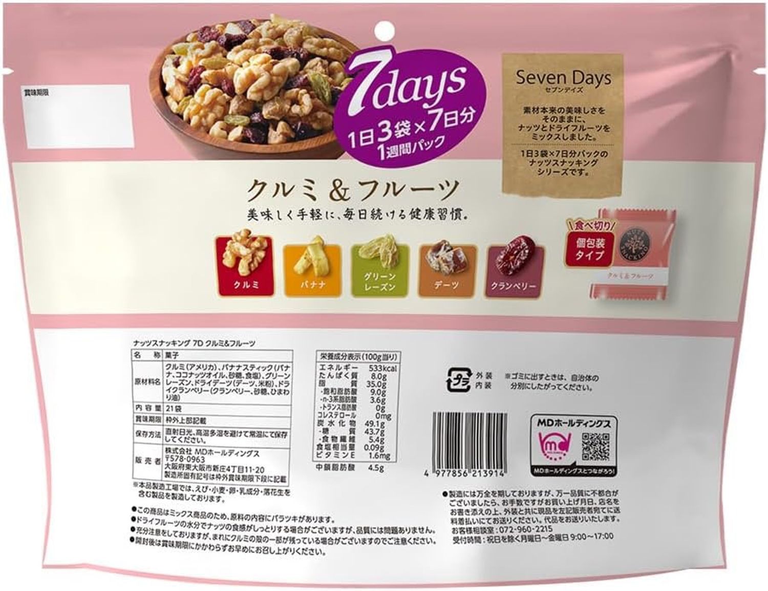 21 ширхэг жижиг ууттай — өдөр бүр хэрэглэхэд тохиромжтой хэмжээтэй, 7 хоногийн самар жимсний бүрэн хэрэглээ болно.