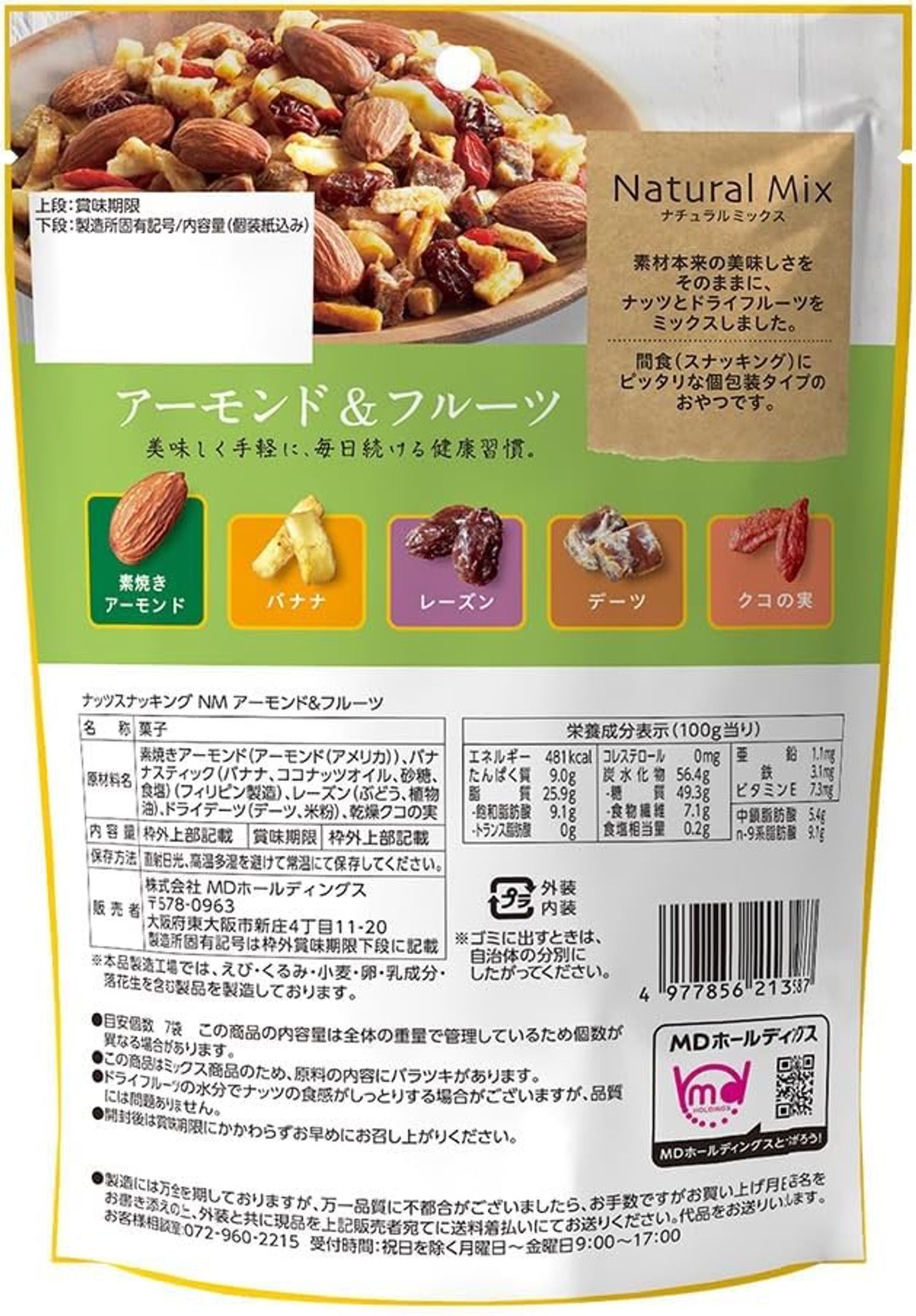 Хуураагүй бүйлс (Almond USA), бананы савханцар (banana Philippin; кокосын тос, элсэн чихэр, давс), үзэм (усан үзэм, ургамлын тос), финик, (будааны гурил), хатаасан коко үр.
